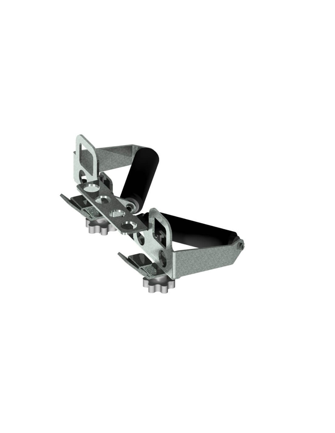 Dispositivo Poggia palo Attrezzo utile per tutte le attività che si svolgono appoggiando la scala su una superficie tonda, come ad esempio un palo. Il dispositivo poggia sul palo con due rulli di gomma e viene fornito completo di cinghia di sicurezza.